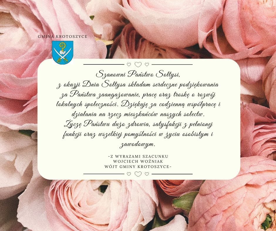 z okazji Dnia Sołtysa składam Państwu najserdeczniejsze życzenia oraz wyrazy uznania za codzienną pracę i zaangażowanie na rzecz lokalnej społeczności.