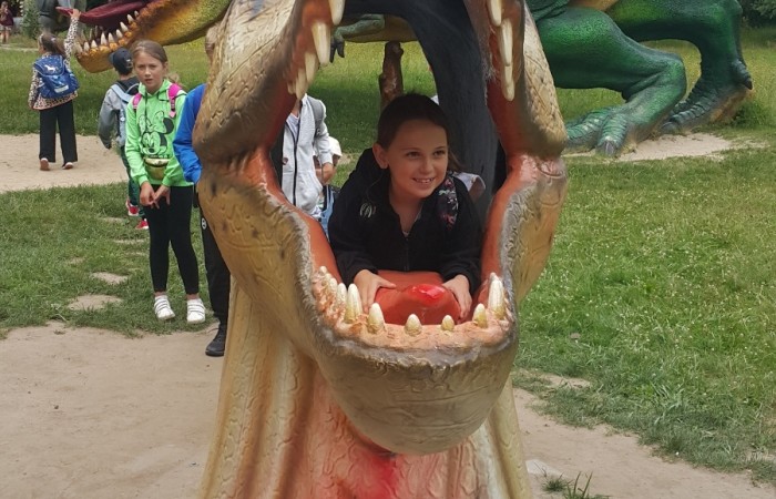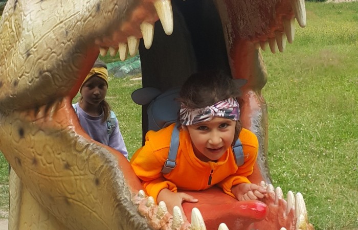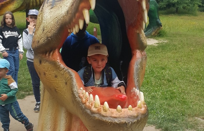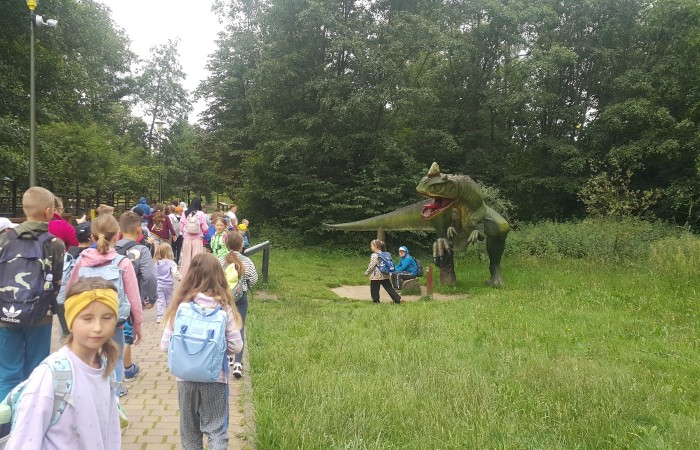 Pierwsza 02.07.2024 do Lubina. Wizyta w mini ZOO i spacer po ścieżce edukacyjnej z czterdziestoma naturalnej wielkości dinozaurami zrobiły na uczestnikach duże wrażenie. Pogoda dopisała i po zabawie na placu zabaw wróciliśmy do Krotoszyc.