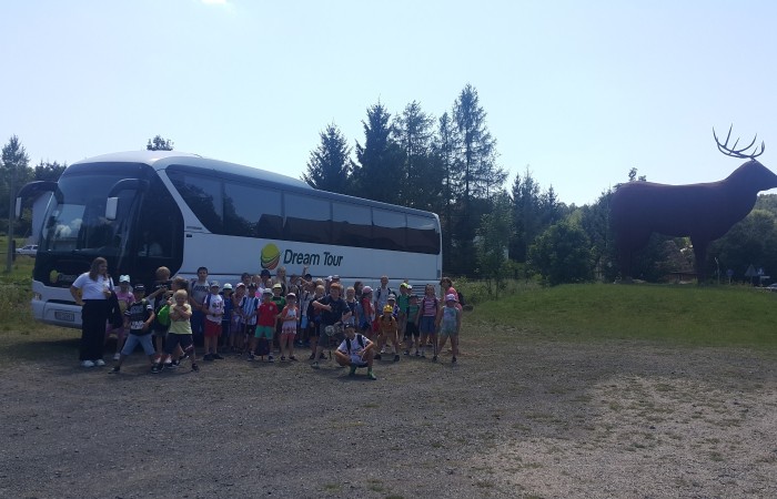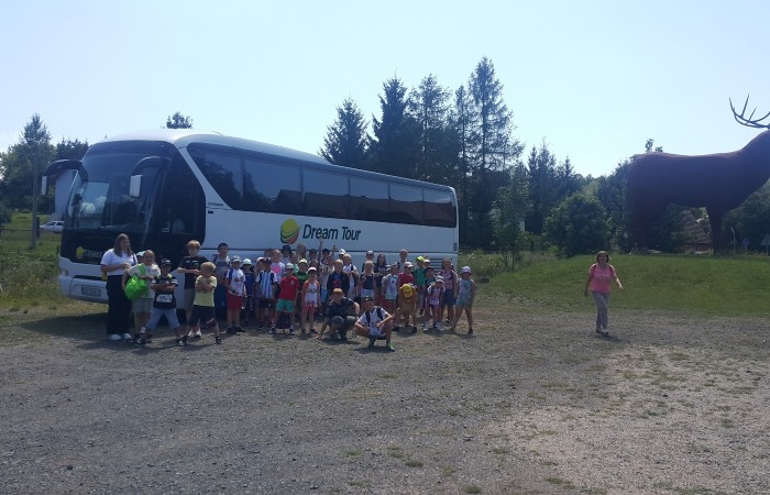 Dnia 25.07.2024 dzieci pojechały do Dobkowa do Sudeckiej Zagrody Edukacyjnej. Jest to nowoczesne interaktywne centrum edukacji. Tam uczestnicy dowiedzieli się wiele o budowie Ziemi, wulkanach i ruchach płyt kontynentalnych. Poznały wiele minerałów, zajrzały do wnętrza wulkanów i poczuły jak wygląda trzęsienie Ziemi. W sali laboratoryjnej odbyły się warsztaty chemiczne, na których uczestnicy wykonali polimery. Wycieczkę zakończyło ognisko z własnoręcznie pieczonymi kiełbaskami.