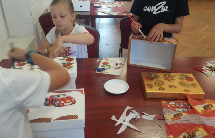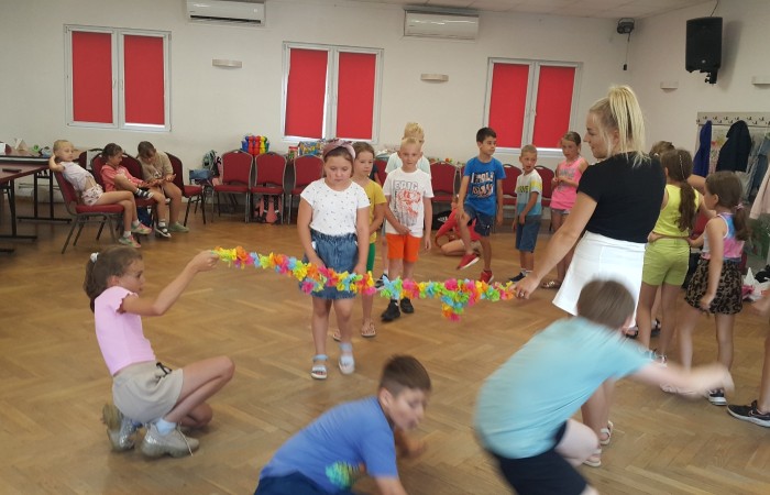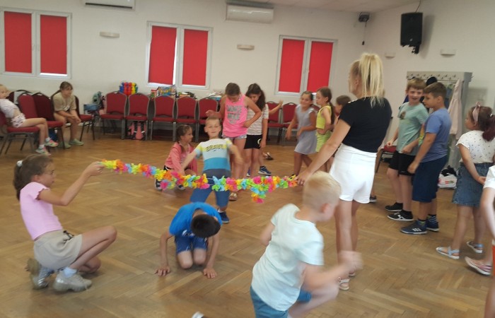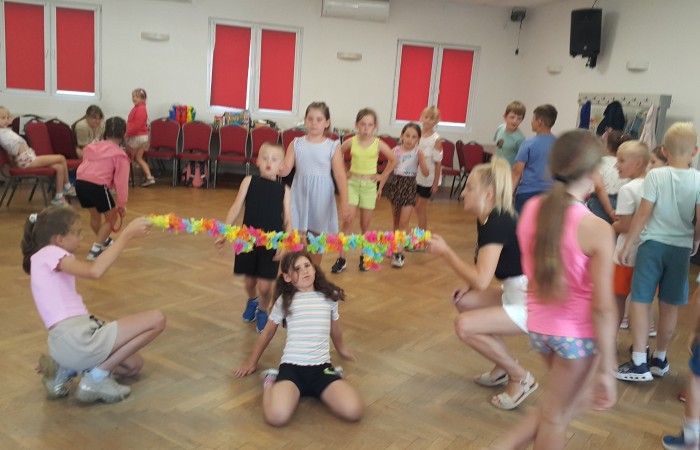 Pierwsza 02.07.2024 do Lubina. Wizyta w mini ZOO i spacer po ścieżce edukacyjnej z czterdziestoma naturalnej wielkości dinozaurami zrobiły na uczestnikach duże wrażenie. Pogoda dopisała i po zabawie na placu zabaw wróciliśmy do Krotoszyc. Dnia 23.07.2024 dzieci odwiedziły „Magiczną Pławnę”. Pierwszą atrakcją była wizyta w Arce Noego, w której uczestnicy poznali historię potopu i obejrzeli zgromadzone zabytki z regionu wygasłych wulkanów. W zamku Legend Śląskich w półmroku zobaczyliśmy teatr lalek. Ogromne kukły i efekty specjalne (światło i dźwięk) zrobiły ogromne wrażenie. W ogrodzie rycerskim dzieci posiliły się i spędziły czas na placu zabaw. Była też chwila relaksu na karuzeli oraz warsztaty drukarskie, na których każdy uczestnik wykonał pracę litograficzną, którą zabrał jako pamiątkę.W dniach od 01 - 26.07.2024 na świetlicy wiejskiej w Krotoszycach odbywały się zajęcia wakacyjne dla dzieci