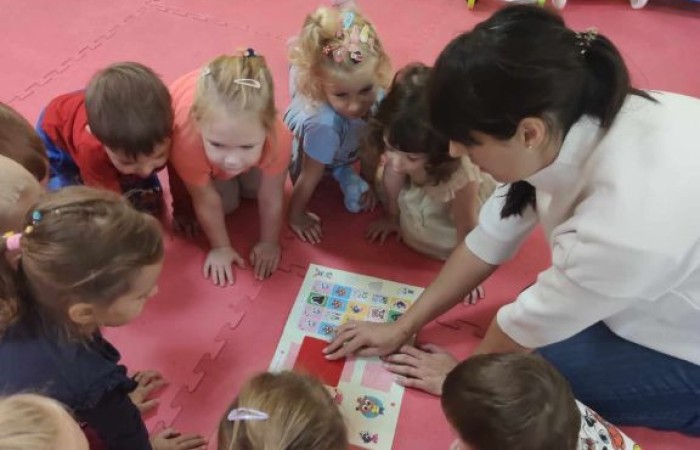 Dzieci z oddziału przedszkolnego w grupie 3 i 4 latków z SP Krotoszyce uczestniczą w zajęciach z języka angielskiego, które ukierunkowane są na usprawnianie umiejętności porozumiewania się komunikowania w języku angielskim poprzez zabawę.
