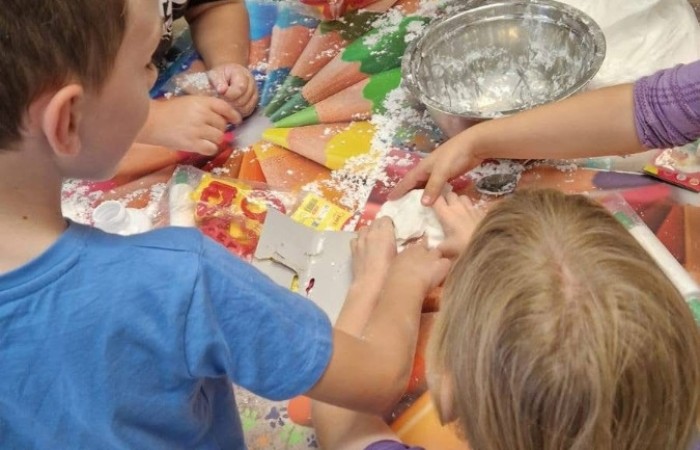Dzieci mogą malować, ugniatać, mieszać i tworzyć własne dzieła z naturalnych, bezpiecznych materiałów.