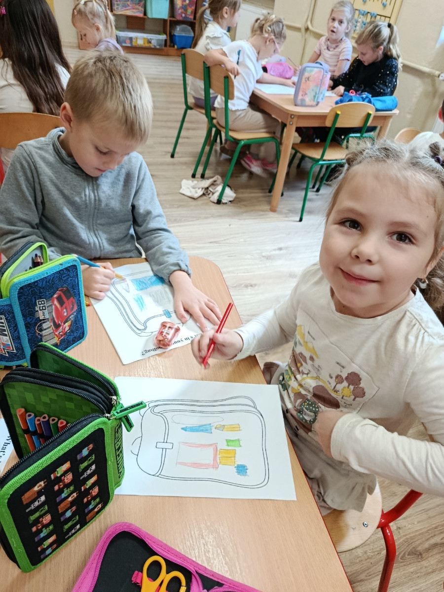 W grupie 4/5 latków oraz zerówce powtórzyliśmy wcześniej poznanie kolory oraz poznaliśmy te trudniejsze ( brown and grey), poszerzyliśmy swoje słownictwo słówkami z rozdziału "School supplies ( przybory szkolne) przeliczaliśmy te przedmioty używając liczebników 1-10.