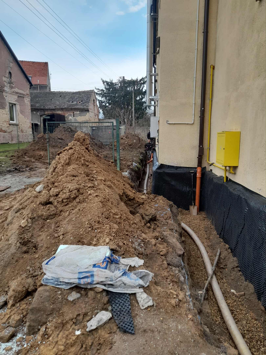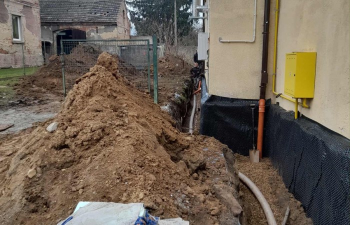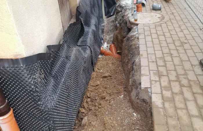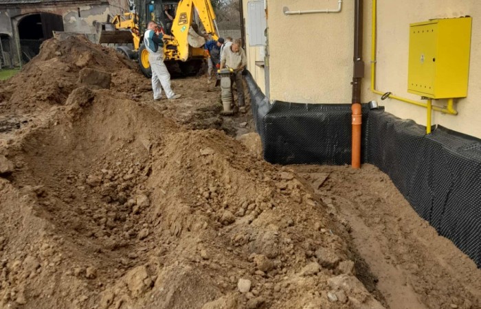 W ramach zadania zostaną wykonane izolacje pionowe przeciwwodne, izolacje cieplne i przeciwdźwiękowe, izolacje pionowe ścian fundamentowych z folii kubełkowej, wykonanie drenażu.