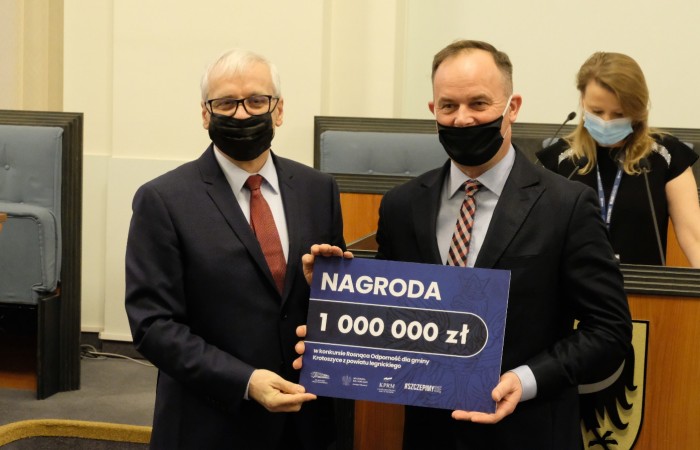 Z przyjemnością informuję, iż w dniu 30 grudnia 2021 r. odebrałem z rąk Wojewody Dolnośląskiego- Pana Jarosława Obremskiego nagrodę w wysokości 1 mln zł. za zajęcie I miejsca w konkursie „Rosnąca Odporność ‘’.