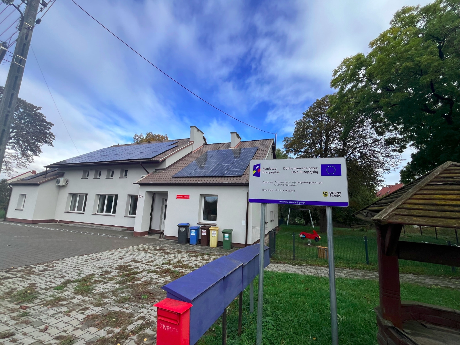 W okresie 2024-2025 roku był realizowany projekt dotyczący kompleksowej termomodernizacji budynków: świetlicy wiejskiej w Krotoszycach, świetlicy wiejskiej w Krajewie oraz budynku Urzędu Gminy. Roboty były prowadzone przez firmę KORT spółka z o o z Wołowa.