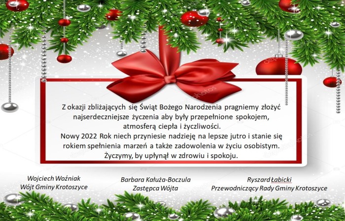 Z okazji zbliżających się Świąt Bożego Narodzenia pragniemy złożyć najserdeczniejsze życzenia aby były przepełnione spokojem, atmosferą ciepła i życzliwości.