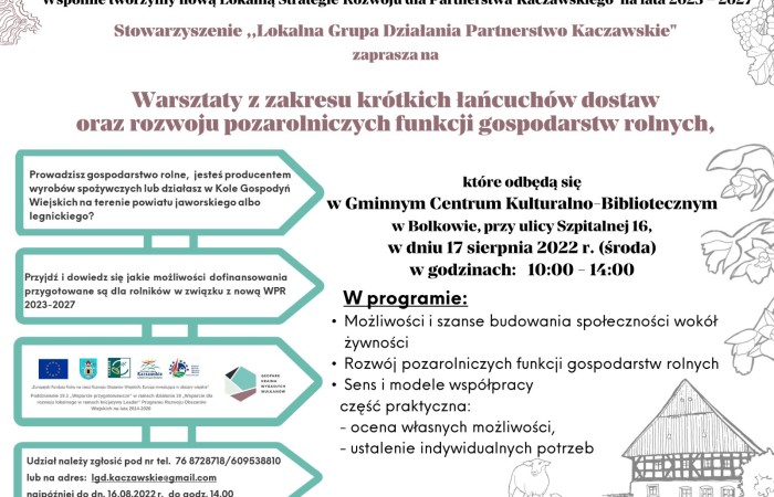 Zaproszenie na „Warsztaty z zakresu krótkich łańcuchów dostaw oraz rozwoju pozarolniczych funkcji gospodarstw rolnych"