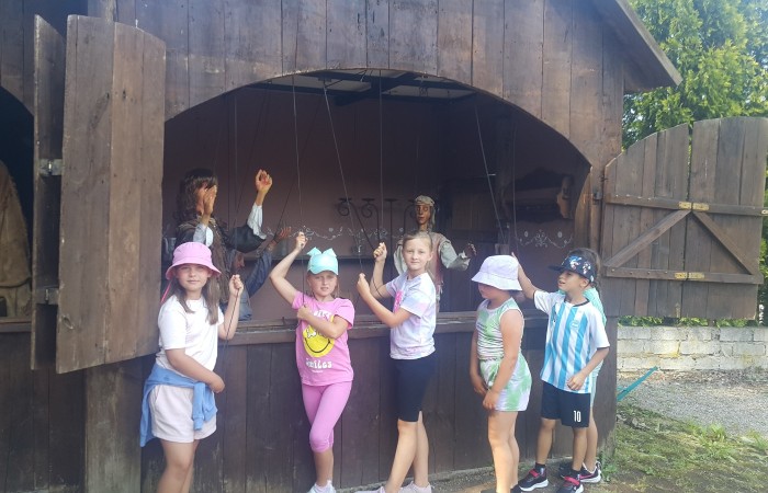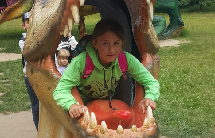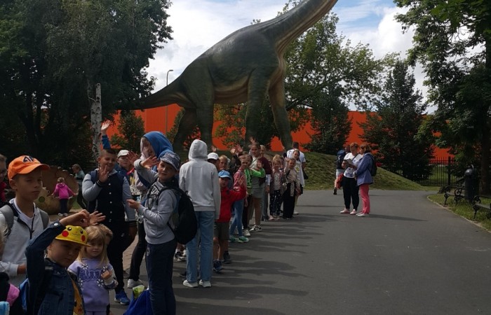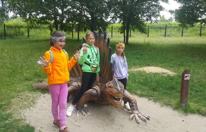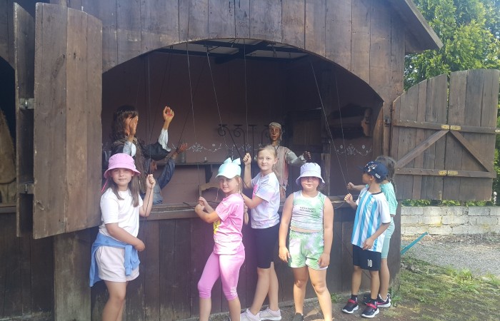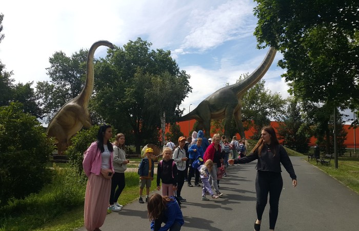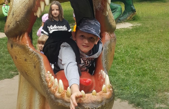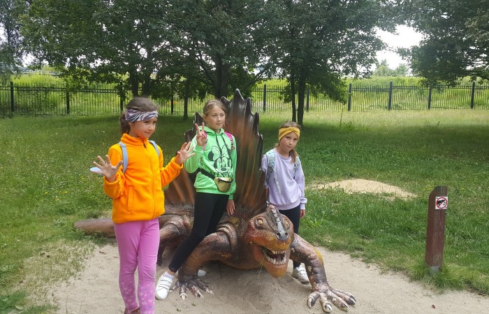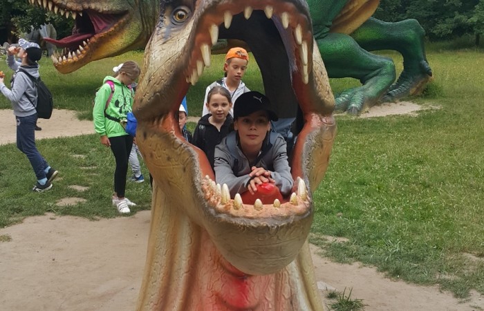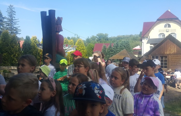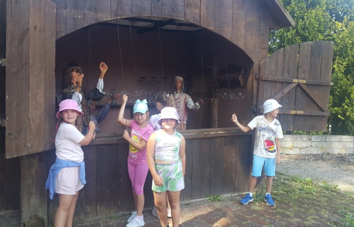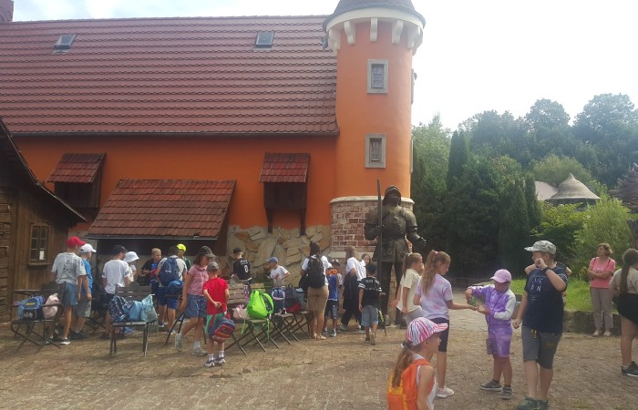 Pierwsza 02.07.2024 do Lubina. Wizyta w mini ZOO i spacer po ścieżce edukacyjnej z czterdziestoma naturalnej wielkości dinozaurami zrobiły na uczestnikach duże wrażenie. Pogoda dopisała i po zabawie na placu zabaw wróciliśmy do Krotoszyc. Dnia 23.07.2024 dzieci odwiedziły „Magiczną Pławnę”. Pierwszą atrakcją była wizyta w Arce Noego, w której uczestnicy poznali historię potopu i obejrzeli zgromadzone zabytki z regionu wygasłych wulkanów. W zamku Legend Śląskich w półmroku zobaczyliśmy teatr lalek. Ogromne kukły i efekty specjalne (światło i dźwięk) zrobiły ogromne wrażenie. W ogrodzie rycerskim dzieci posiliły się i spędziły czas na placu zabaw. Była też chwila relaksu na karuzeli oraz warsztaty drukarskie, na których każdy uczestnik wykonał pracę litograficzną, którą zabrał jako pamiątkę.