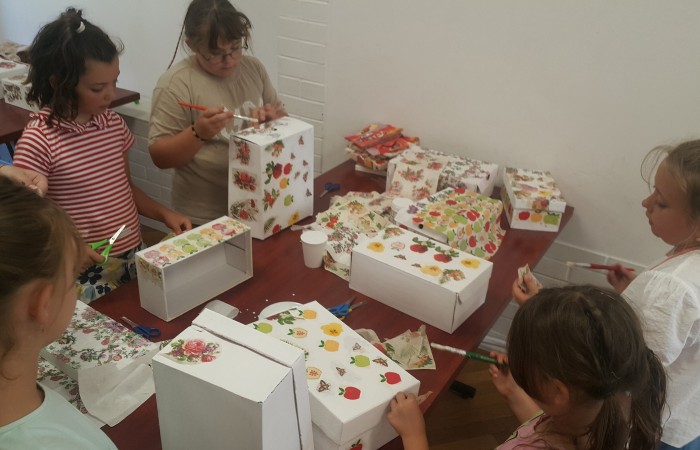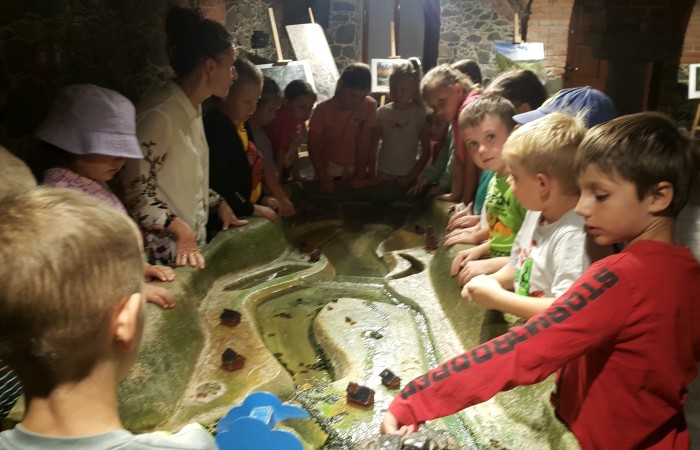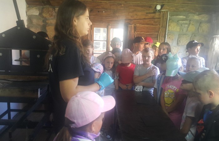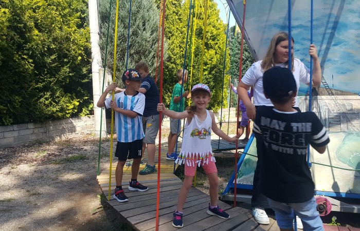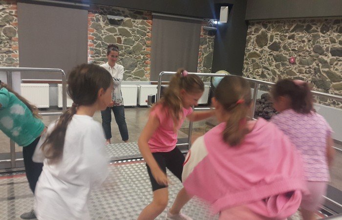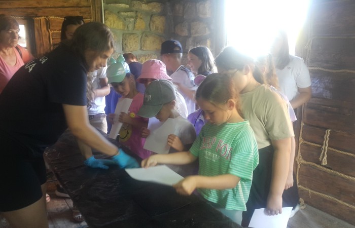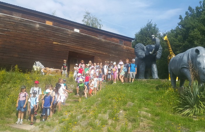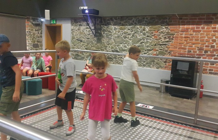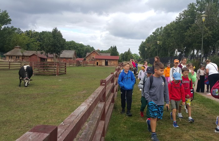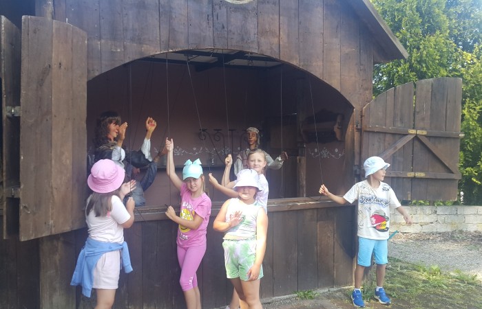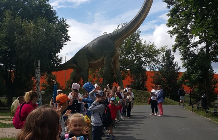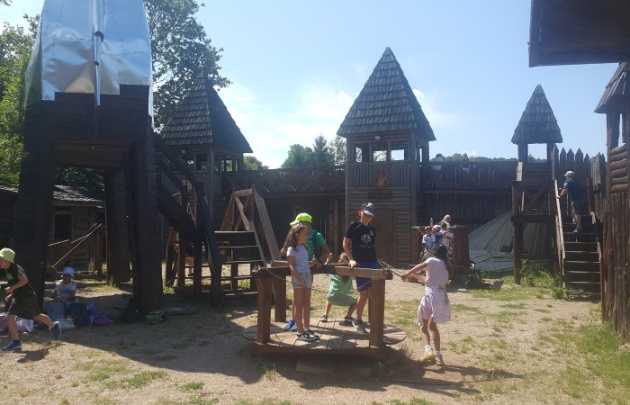 Pierwsza 02.07.2024 do Lubina. Wizyta w mini ZOO i spacer po ścieżce edukacyjnej z czterdziestoma naturalnej wielkości dinozaurami zrobiły na uczestnikach duże wrażenie. Pogoda dopisała i po zabawie na placu zabaw wróciliśmy do Krotoszyc. Dnia 23.07.2024 dzieci odwiedziły „Magiczną Pławnę”. Pierwszą atrakcją była wizyta w Arce Noego, w której uczestnicy poznali historię potopu i obejrzeli zgromadzone zabytki z regionu wygasłych wulkanów. W zamku Legend Śląskich w półmroku zobaczyliśmy teatr lalek. Ogromne kukły i efekty specjalne (światło i dźwięk) zrobiły ogromne wrażenie. W ogrodzie rycerskim dzieci posiliły się i spędziły czas na placu zabaw. Była też chwila relaksu na karuzeli oraz warsztaty drukarskie, na których każdy uczestnik wykonał pracę litograficzną, którą zabrał jako pamiątkę.