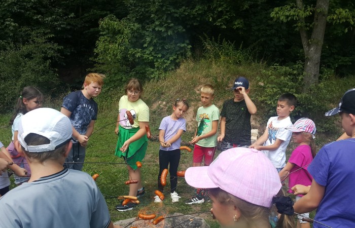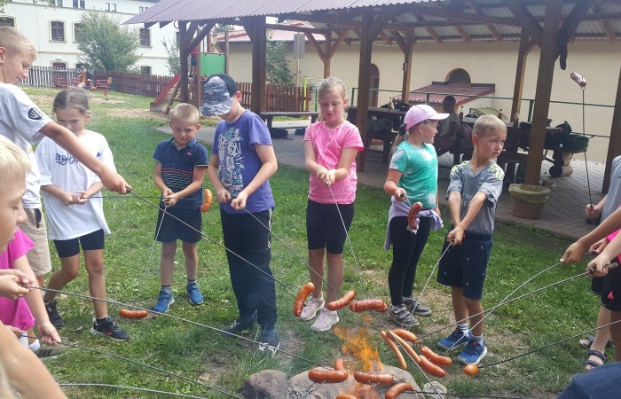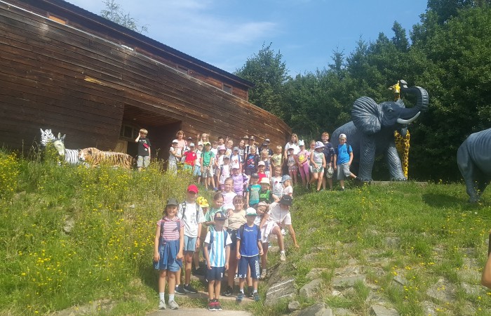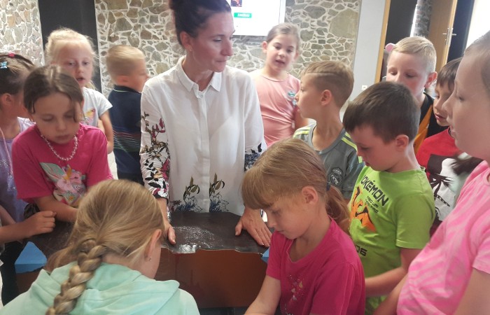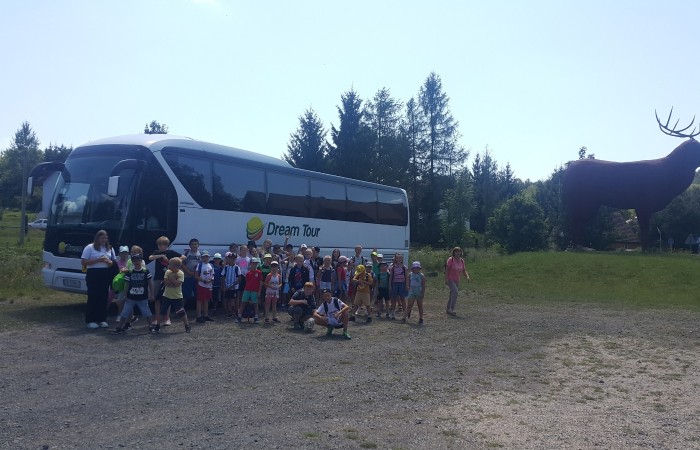 Dnia 25.07.2024 dzieci pojechały do Dobkowa do Sudeckiej Zagrody Edukacyjnej. Jest to nowoczesne interaktywne centrum edukacji. Tam uczestnicy dowiedzieli się wiele o budowie Ziemi, wulkanach i ruchach płyt kontynentalnych. Poznały wiele minerałów, zajrzały do wnętrza wulkanów i poczuły jak wygląda trzęsienie Ziemi. W sali laboratoryjnej odbyły się warsztaty chemiczne, na których uczestnicy wykonali polimery. Wycieczkę zakończyło ognisko z własnoręcznie pieczonymi kiełbaskami.