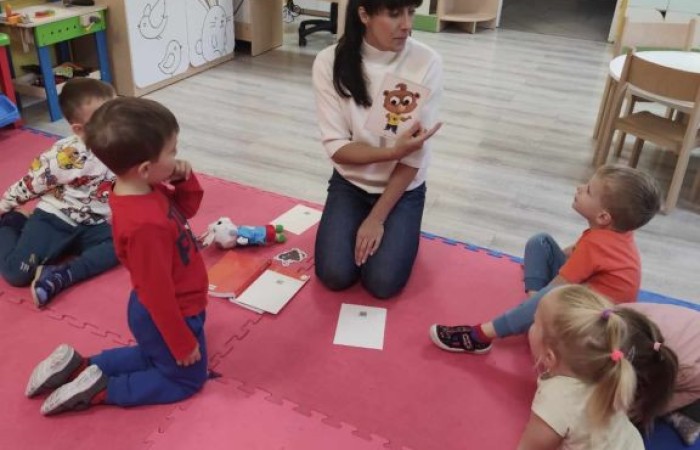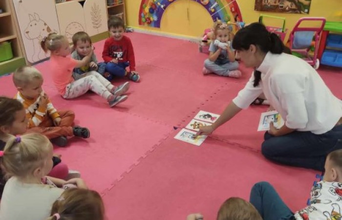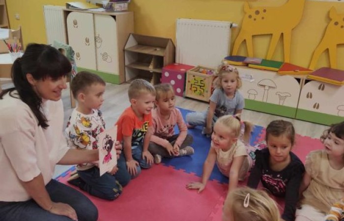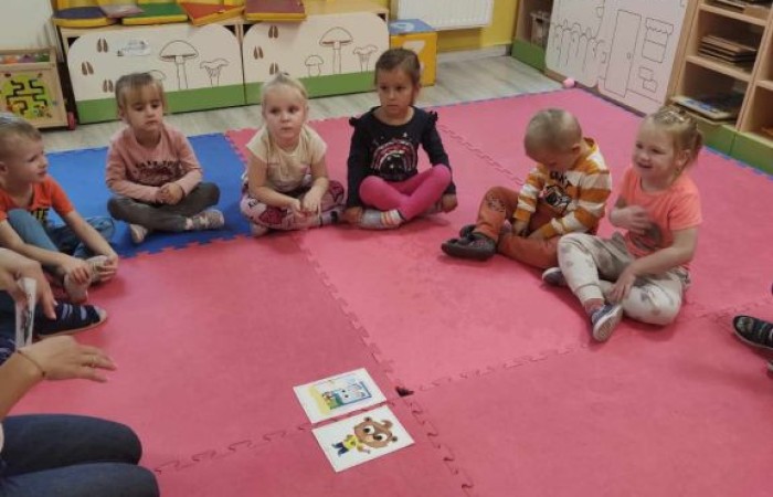 Dzieci z oddziału przedszkolnego w grupie 3 i 4 latków z SP Krotoszyce uczestniczą w zajęciach z języka angielskiego, które ukierunkowane są na usprawnianie umiejętności porozumiewania się komunikowania w języku angielskim poprzez zabawę.
