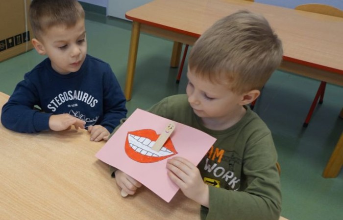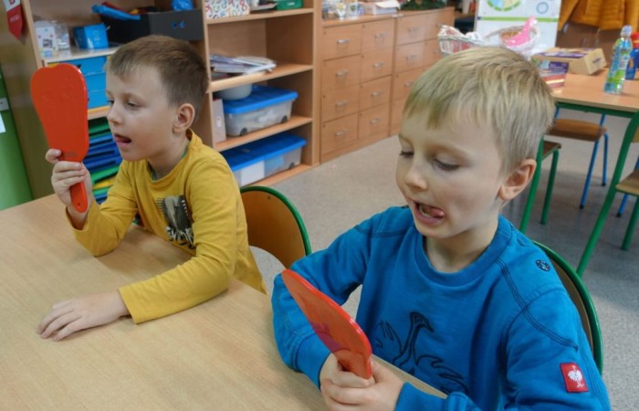 Dzieci z oddziału przedszkolnego w grupie 5 i 6 latków w Szkole Podstawowej w Krotoszycach uczestniczą w zajęciach z logopedii, które ukierunkowane są na niwelowanie wszelkich nieprawidłowości związanych z mową, językiem i komunikowaniem się. Celem zajęć jest nie tylko redukowanie zaburzeń ale też korekcji niewłaściwych nawyków i wyrabianie właściwych.