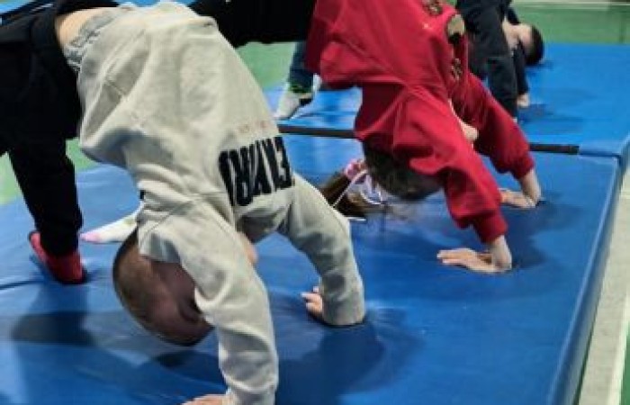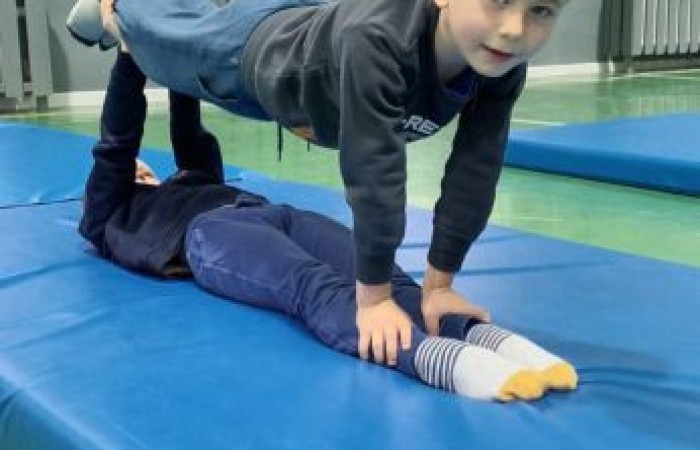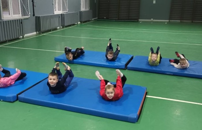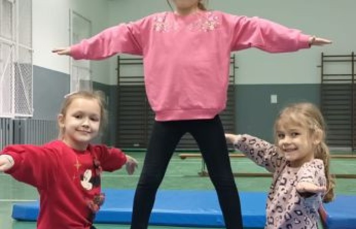 W ramach prowadzonych zajęć dzieci z oddziału przedszkolnego w grupie 6-6 - latków uczestniczą w zajęciach z gimnastyki akrobatycznej, które usprawniają je ruchowo. Celem zajęć jest także budowanie silnych kości i mięśni.