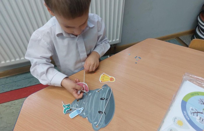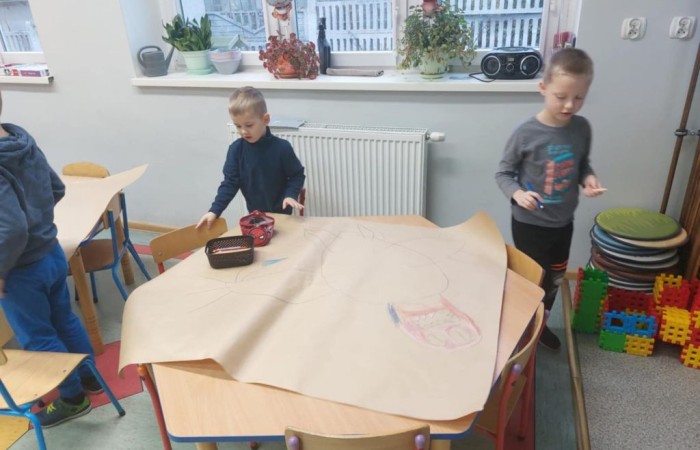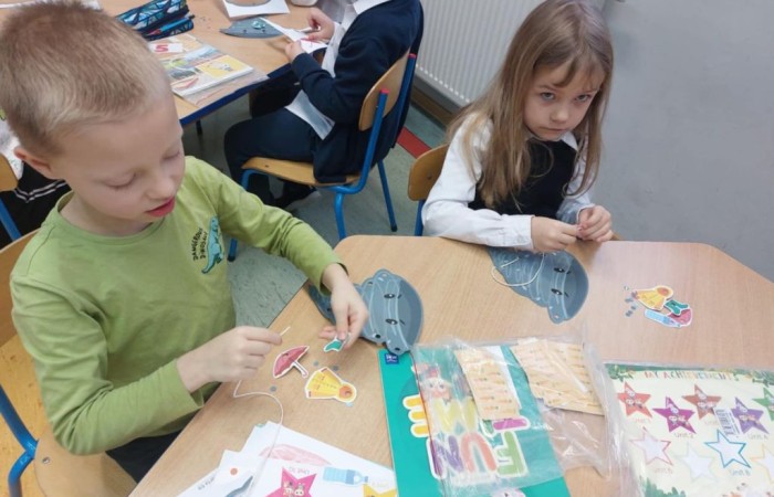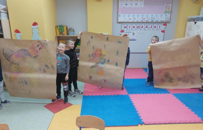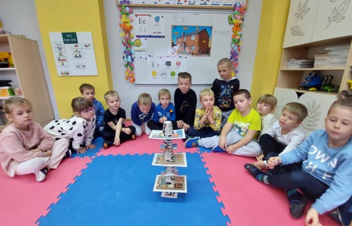 Dzieci z oddziału przedszkolnego w grupie 5 i 6latków z SP Krotoszyce uczestniczą w zajęciach z języka angielskiego, które ukierunkowane są na usprawnianie umiejętności porozumiewania się komunikowania w języku angielskim poprzez zabawę.