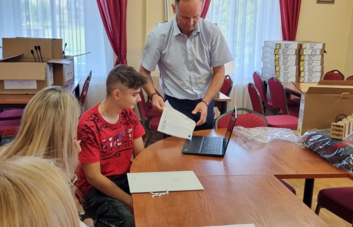 Laptopy wydawane zostaną w ramach projektu grantowego "Wsparcie dzieci rodzin pegeerowskich w rozwoju cyfrowym - Granty PGR"